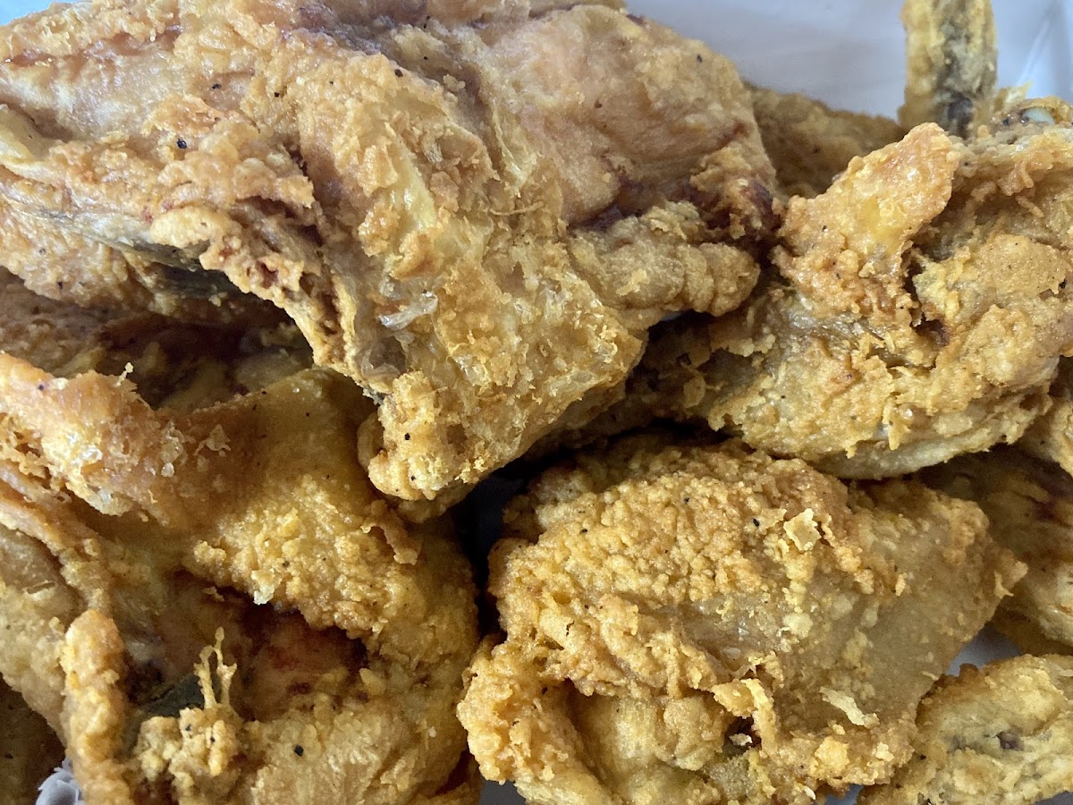 The fried chicken is delicious! Very light batter, super crispy but juicy inside. I believe the chicken is brined. It has great flavor. You do not need any sauces! The chicken is made to order so it does take a bit of time. There's free street parking. The interior is very outdated but I was there for the fried chicken. Very affordable prices. I would definitely return.