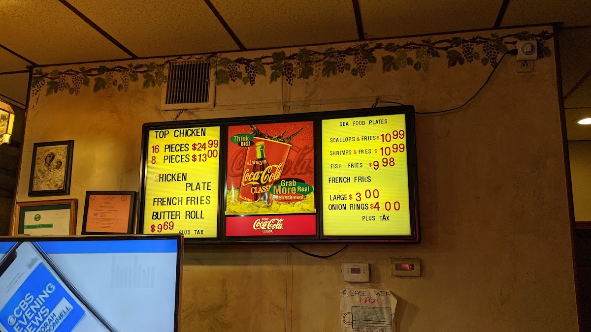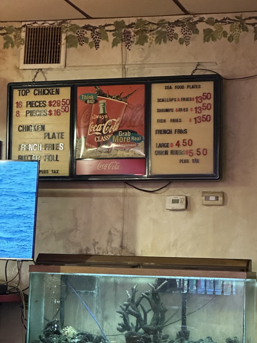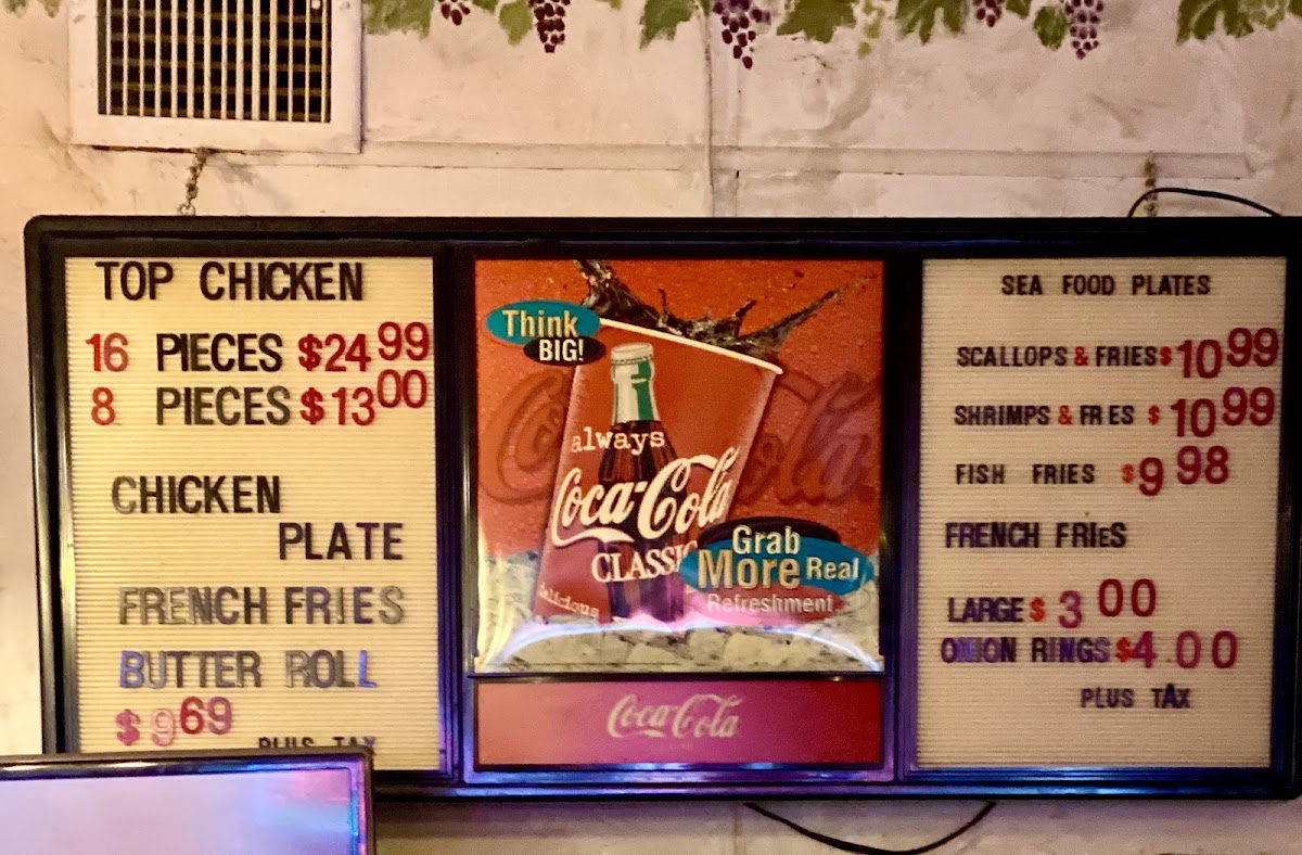 The menu features staple items such as their signature fried chicken and chicken plates accompanied by fries and butter rolls, alongside other options like chicken breast dinners and even scallops & fries. This kind of food suits the down-to-earth atmosphere of the restaurant, where you can expect a laid-back experience with familiar flavors and generous portions.